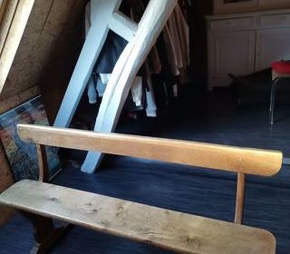 Banc en chêne massif très bon état avec dosseret maron. Réglement et enlèvement sur place.