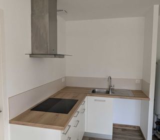 Cuisine de 2020 très bon état façade blanche , plan de travail melaminé couleur bois. Cuisine vendue avec meuble+hotte + évier. Plaque de cuisson non incluse. Sa composition :