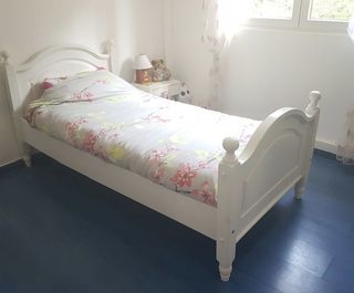 Vends lit 1 personne 90x190 cm Blanc parfait état. Sommier lattes. Matelas peut être laissé avec.