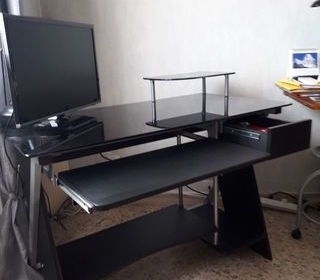 Je vends un bureau pour ordinateur ou autre, en verre fumé et bois noir. Tirette pour clavier. Un tiroir et une étagère en verre. Etat neuf L : 110 P : 58 H : 75. Excellent