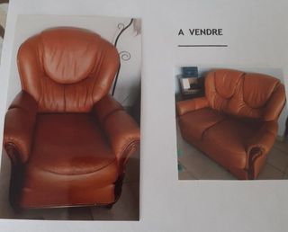 Je vends un fauteuil cuir vachette très bon état tient de la place ,je veux le vendre Hauteur:105cm:largeur:83cm:profondeur:54cm