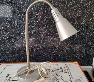 Lampe métal gris, socle Ø 14 cm, flexible d'orientation, hauteur totale déployée 66,5 cm Prix ferme