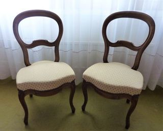 Parfait état En noyer massif mouluré d'époque. Capiton d'assise refait dans les règles de l'art Tissu de recouvrement petit point damassé beige neuf A venir chercher sur pl
