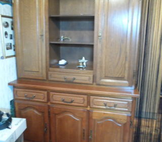 BUFFET 2 CORPS EN CHENE - HAUT 2 GDES PORTES + 2 ETAGERES DE CHQUE COTE + 1 TIROIR - BAS : 3 PORTES 1 ETAGERE DANS LE MILIEU ET 3 TIROIRS HAUT TOTALE 1.90 M PROFONDEUR 40 CM