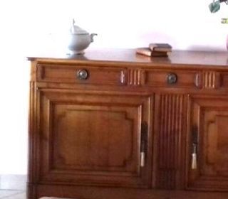 Bahut merisier massif , 2 portes , 3 tiroirs Très beau meuble indémodable , convient dans un style ancien ou moderne , peut également etre repeint en gris , blanc cassé, noir ...