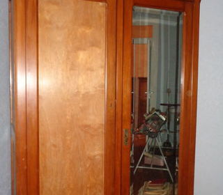 Vend armoire en bois de fruitiers des années 20, 1 côté penderie avec une porte de toute la hauteur avec miroir et 1 côté lingère avec étagères et 2 tiroirs : 116 X 45 X h 208 sur