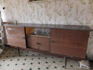 Vend bahut bas des années 50 vernis, 2 grandes portes latérales , une vitrine et une porte centrale. Petit prix