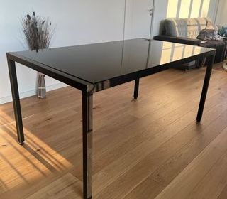 Table à manger vitrée noir en bon état Les dimensions sont 153×90 cm et h 75 cm