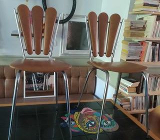 2 chaises pétales vintage années 60/70 Chaise en skaï des années 60/70 Fabriquées en France marque Tub Ménager Structure tubulaire en métal chromé Revêtement en skaï couleu