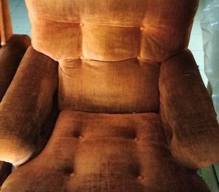 Vds cause déménagement et arrêt du gîte 2 fauteuils orange vintage an 60 bon état 50 l un prix si achat des 2 et un fauteuil vert clair an 60 à 70 e à venir chercher sur place