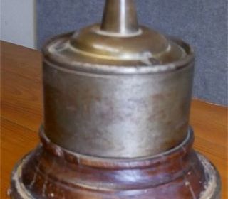 moyeu de roue de char bois et laiton pour déco ou faire une lampe à poser diamètre 18 cm hauteur total 37 cm avec douille pour faire une lampe