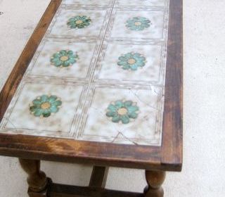 Table basse de salon en bois massif chêne Dessus carrelage décor ( deux carreaux fissurés )