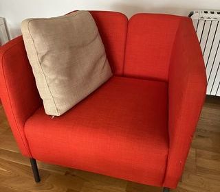 Fauteuil personnalisé avec un coussin de couleur différente. fauteuil de chez Ikéa en tissus , confortable , il s'intègre dans tous les styles d'intérieur. Dimensions: 72*72*72