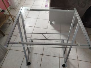 table d'appoint pour ordi ou autres en bon état sur roulettes 60X50 et 70 cm de haut avec dessus en verre