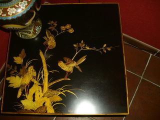 Table de salon de style asiatique noire, signée par le dessinateur. Cause déménagement bradée 80€.