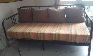 Clic clac avec housse en tissu et deux coussins. Vendu avec son matelas Bon état général. Dimensions : 180 X 120