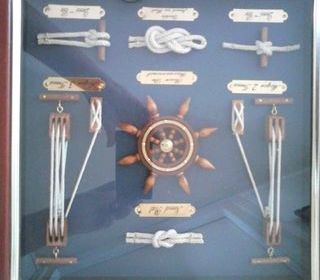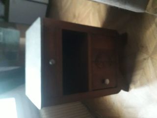 Meuble téléphone thème marine Meuble téléphone en PIN Finition teinte foncée N° de LOT 0604 Composé d'un tiroir de 55 mm de profondeur avec bouton en n?uds (corde) Dim : 30 x