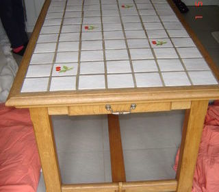 Table chêne carrelée avec 2 tiroirs 1.54x0.80 hauteur: 77 Très bon état - prix 50% de l'achat