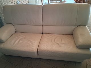 Canape 3 places beige clair buffle pur cuir a debattre a partir avant fin mai