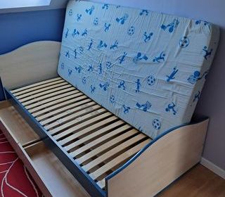 En pin massif à lattes et matelas avec housse Très bon état Peut être vendu ensemble 95 € Ou séparément, soit le transat 60 €, soit les 2 matelas 35 € Transat à lattes de 201