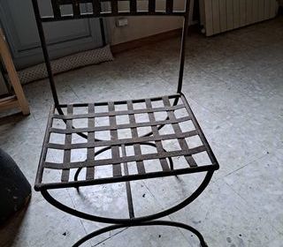 Table basse de style oriental en verre en fer forgé accompagnée des ses quatre fauteuils