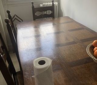 vend table de sale à manger de 6 à 10 personnes avec 6 chaises état correcte une chaise légèrement endommagé et bout de table verni à restaurer (à venir chercher sur place et règle