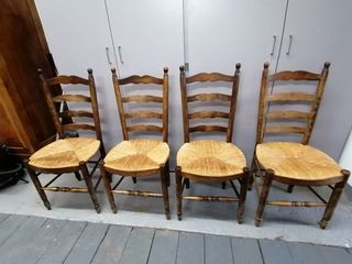 Lot de 4 chaises paillées en chêne fabriquée par un ébéniste 20 € la chaise ou 60 € les 4 A venir récupérer sur place avec paiement en espèces