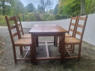 1 Table chêne 120x80 4 chaises paillees en chêne Enlèvement sur place.