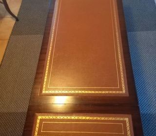 Longueur : 92 cm Largeur : 50 cm avec rallonges : 132 cm Hauteur : 50 cm dessus en cuir, aucune tâche remise en mains propres