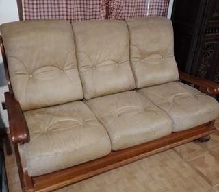 canape bois cuir L 1850 l 950 mm 2 fauteuil l 700 p 900 h 940 mm