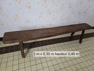 Je vends ce banc en bois massif. - Type de produit : Banc - Matériau : Bois massif - Dimensions : 2m x 0,30m, hauteur 0,45m État satisfaisant