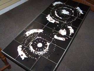 Table de salon des années 70 plateau céranique un carreau de fendu cause vide maison dépard maison de retraite