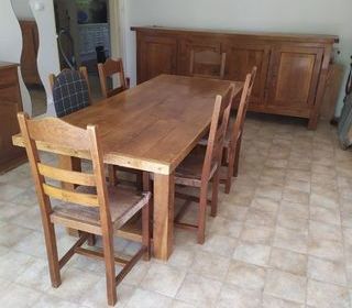 A VENDRE SALLE A MANGER EN CHENE artisanale TABLE DIMENSION : HAUTEUR : 0.76m LARGEUR : 0.88m LONGUEUR : 2.05m BUFFET: HAUTEUR :1.10m LARGEUR: 0.55m LONGUEUR: 2.60m +6