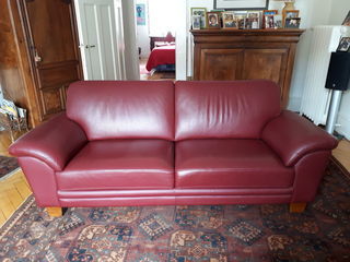 Canapés en cuir bordeaux pleine fleur achetés en Allemagne : 3 places et 2 places. Comme neufs. Vendus ensemble ou séparément. Visibles à Strasbourg centre-ville.
