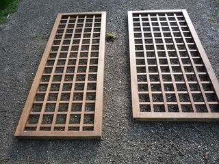 Claustra/panneau bois ajouré épaisseur cadre 5cm x 5cm / croisillon 2cm x 2cm 70cm x 150cm / 85€ 60cm x 164,5cm / 65€