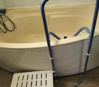 Marchepied avec barre de soutien pour baignoire. Aide à l'accessibilité à la baignoire. Très bon état.