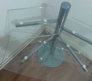 Bureau d'angle - Matériau : Verre transparent - Structure : Métal gris - Pièce : Bureau - Fonctionnalités : Surface de travail spacieuse en angle - Démontable : oui Très bon état P