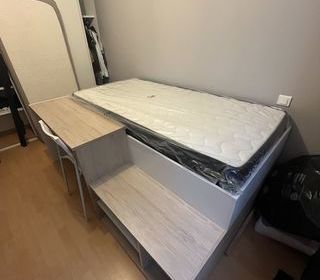 Lit en bois avec bureau intégré, interchangeable, très peu servi. Prix neuf : 240€