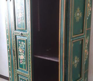 Bois massif - 3 tablettes intérieur - Grande capacité de rangement - style Balien ou Mongol - possible meuble de salon (équipée pour appareils avec fil) - peinture main - conceptio