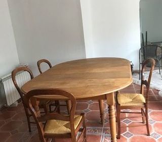 Cède belle table d'ébéniste chêne clair qui est modulable en fonction des besoins. Elle possède 3 rallonges qui peuvent etre utilisées à l'unité ou toutes les 3. hauteur de la tab