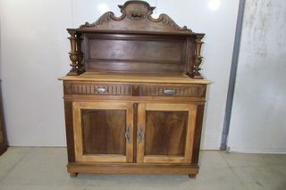 Buffet deux corps Ou l'on peut enlever l'étagère pour en faire un bahut bas. En noyer et carolin Buffet de cuisine ancien début 20ème. Les différentes couleurs