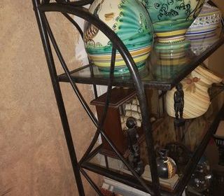 - 49cm de hauteur, - 70cm de diamètre, -Meurisier - cannée + verre