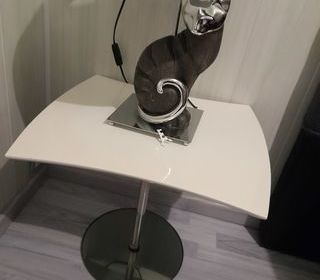 Petite table de chevet plateau blanc pied chromé gris alu ,pour posée vase ,lampe de chevet ou autre