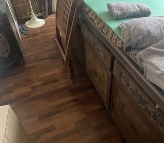 table de massage indonésienne en teck en très bon état avec 2 grands tiroirs de rangement