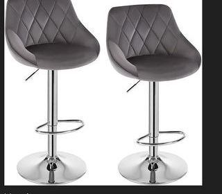 Nous vendons 2 Chaises Tabourets Bar réglables en hauteur avec dossiers en velours gris foncé, très belles toutes neuves (encore emballées), convient pour cuisine ou salle à manger