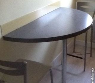Type : Table, table basse Desserte cuisine demie lune stratifié coloris ardoise 120x60x3,9 avec pied Chrome diamètre 60 hauteur 870