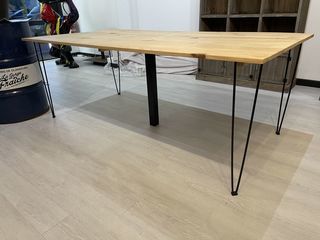 Table chêne pieds industriels Plateau fin mais solide car à supporter beaucoup de poids en commerce 2*1m