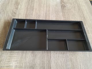 Organisateur de tiroir de bureau, de couleur noire, avec 5 compartiments, très pratique pour ranger les différents stylos, trombones, les agraphes, gommes, post-it et tous les a