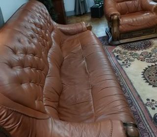 Vends très beau ensemble salon en cuir beige composé d'un canapé 2 places + fauteuil. Cuir d'excellente qualité, très bon état, aucune trace usure. Canapé à l'ancienne, extrêmement