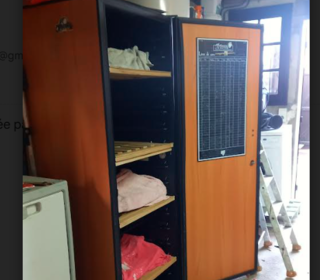 armoire cave a vin ( ne fonctionnant pas mais encore réparable , ) L-0.68X H-1M.81 X PROF -0M.68 en très bonne structure rigide ,avec porte pleine et poignée serru